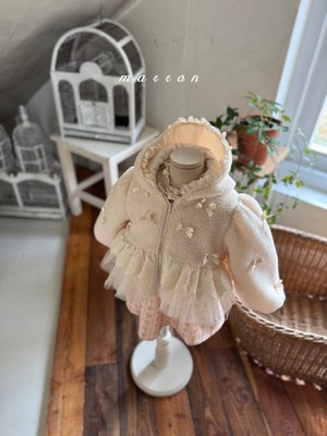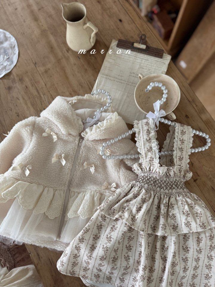 -上品なベルベットテクスチャーに、繊細なレースとチュールディテールを重ねたプレミアムスーツ。ふんわりとしたレースフリルとベルベットリボンが視線を惹きつけ、チュールスカートを重ねたボリューム感のあるシルエットが愛らしさを引き立てます。お宮参りやバースデー、記念撮影など特別な日にぴったりのフォーマルウェアです。