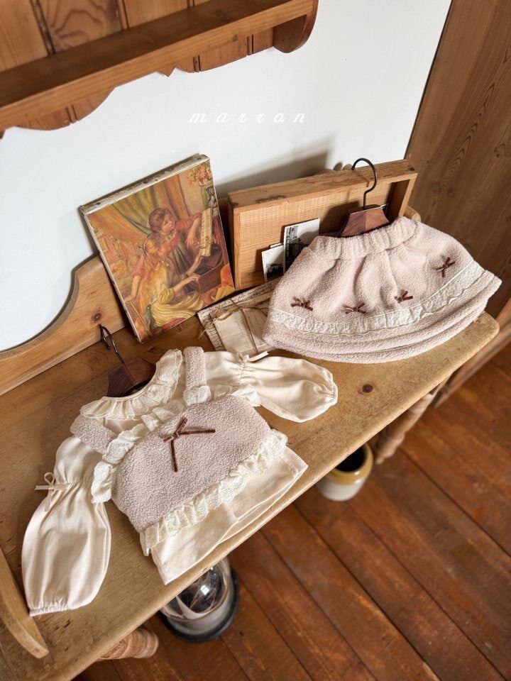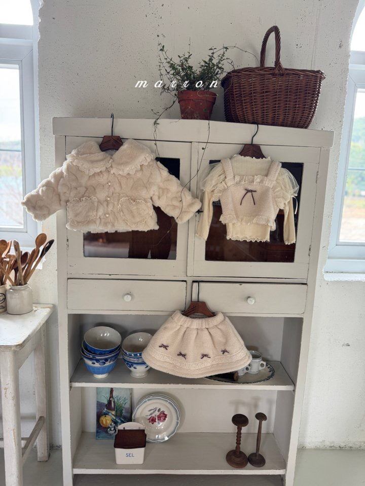 -上品なベルベットテクスチャーに、繊細なレースとチュールディテールを重ねたプレミアムスーツ。ふんわりとしたレースフリルとベルベットリボンが視線を惹きつけ、チュールスカートを重ねたボリューム感のあるシルエットが愛らしさを引き立てます。お宮参りやバースデー、記念撮影など特別な日にぴったりのフォーマルウェアです。