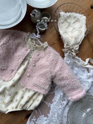 -上品なベルベットテクスチャーに、繊細なレースとチュールディテールを重ねたプレミアムスーツ。ふんわりとしたレースフリルとベルベットリボンが視線を惹きつけ、チュールスカートを重ねたボリューム感のあるシルエットが愛らしさを引き立てます。お宮参りやバースデー、記念撮影など特別な日にぴったりのフォーマルウェアです。
